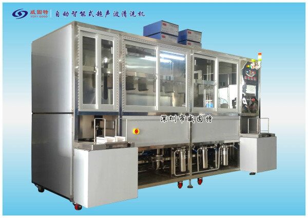 設(shè)備共有5個功能槽,配置有拋動系統(tǒng)、循環(huán)過濾系統(tǒng)、自動恒溫系統(tǒng)、定時系統(tǒng)、自動智能式機械手、熱風(fēng)烘干系統(tǒng)等。設(shè)備采用環(huán)保型水溶劑洗滌、純水漂洗